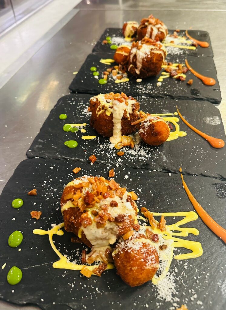 I nostri Salumi di Mare, preparati con cura dallo Chef Mario, rappresentano una vera eccellenza culinaria. Attraverso un avanzato strumento di stagionatura che controlla temperatura e umidità, permettiamo a queste delizie marine di sviluppare sapori unici nel tempo. Integrate nel nostro Menù Gourmet, queste prelibatezze sono il risultato della fusione tra la tradizione napoletana e l’innovazione gastronomica. La nostra dedizione alla qualità si riflette in ogni boccone, offrendo un’esperienza culinaria straordinaria. I Salumi di Mare sono un viaggio sensoriale che vi porterà direttamente sulle rive del mare, con sapori freschi e avvolgenti. Siamo orgogliosi di condividere con voi questa autentica espressione della nostra passione per la cucina di qualità.